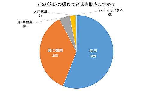 音楽を聴くのは「毎日」56%、「週に数回」36%