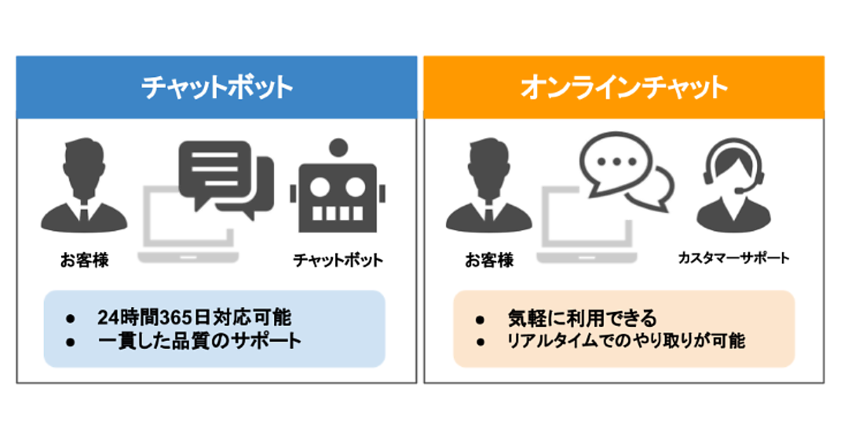 オンラインチャットサポートは、機械によるチャットボットと、サポート担当者のオンラインチャットがある。チャットボットは24時間365日受け付け、サポート担当者のオンラインチャットは、チャットボットで解決できない複雑な課題に対応する。文字でコミュニケーションでき、聞き取りやすさや話し方に関係なく、スムーズなやり取りが可能になる。