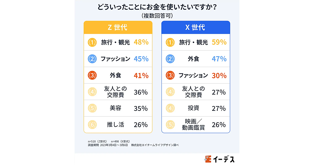 Z・X世代がお金を使いたいのは「旅行・ファッション・外食」