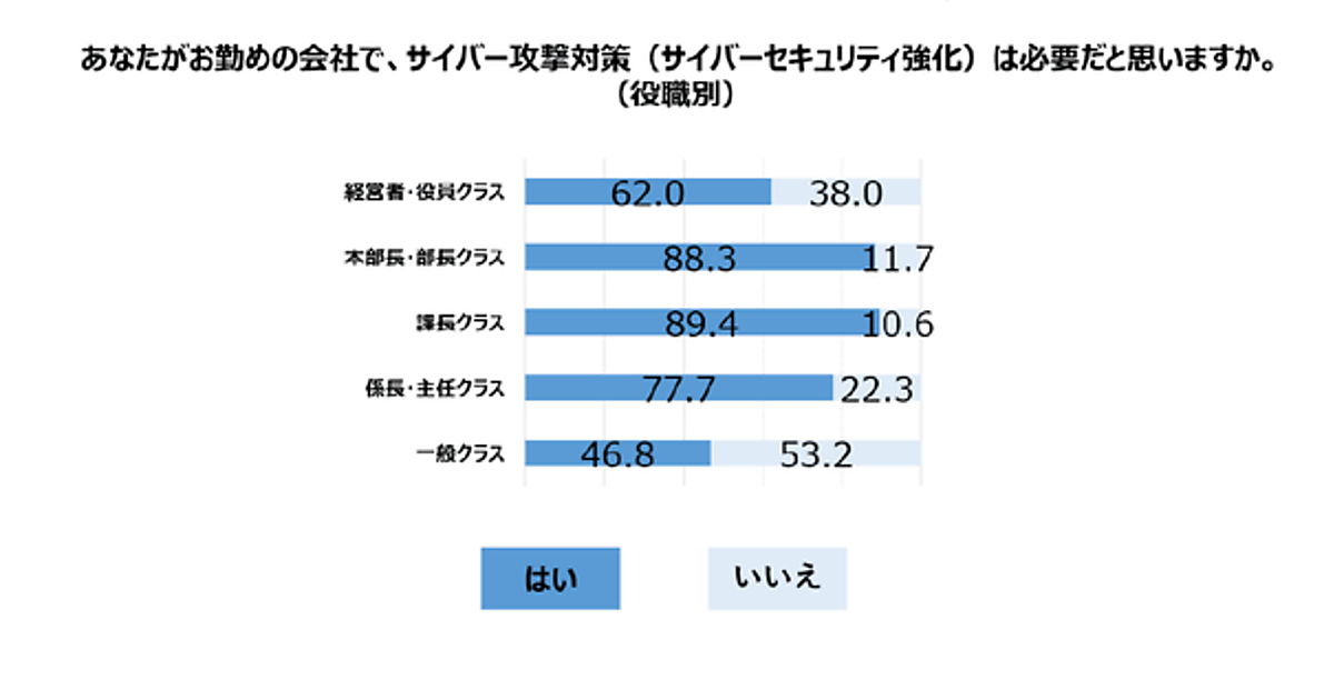 「サイバー攻撃対策は必要だと思う」全体は70.1%なのに、一般クラスは半数以下