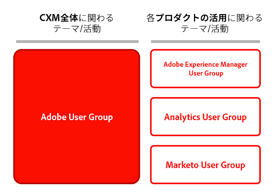 ユーザーコミュニティはこれまで「Adobe Marketo Engage」、「Adobe Analytics」、「Adobe Experience Manager」など製品ごとに運営されてきた。今後は「Adobe Creative Cloud」や「Adobe Document Cloud」の企業ユーザーのコミュニティにまで拡大して、業界や業態、企業規模を超えた情報交換の場を設けていく。