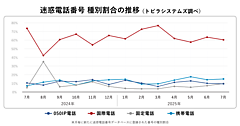 トビラシステムズは、「迷惑電話」に関する調査結果を発表した。犯罪の温床になりやすい迷惑電話や「アポ電」について、同社の迷惑情報データベースをもとに集計した内容となっている。