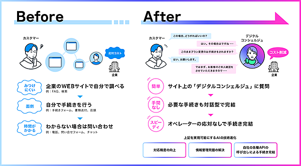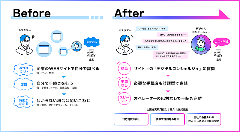 同サービスでの具体的な支援内容は、AIの最新機能を踏まえたカスタマーサービスの新たなあり方の構想策定▽迅速なプロトタイプ開発によるフィジビリティ(実現可能性)と有効性の検証▽正式サービス化に向けたシステム実装と業務プロセスの整備▽愛着が感じられるサービスにするキャラクター開発▽運用からの学びとAIの進化を反映した継続的な改善支援--などとなる。