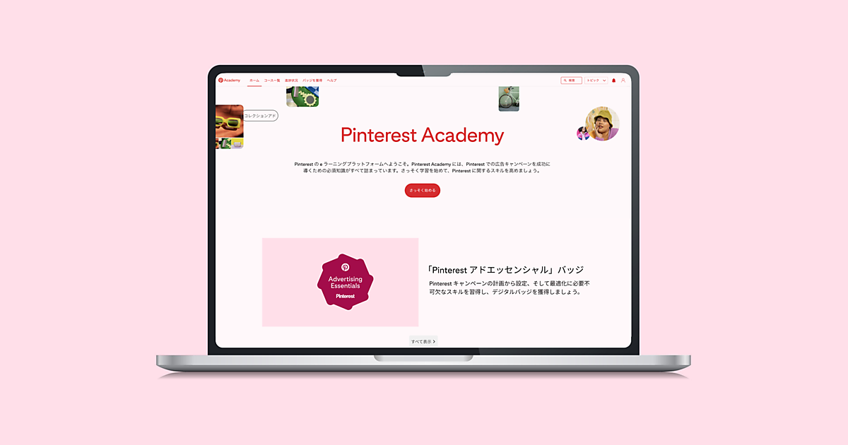 Pinterestが持つ最先端のインサイト(洞察)とデータを活用し、Pinterestのツールや広告ソリューションの効果を最大限に高める方法を紹介する。受講生は、キャンペーンプロセスの全ステップに関する手順とヒントを学ぶことができる。プログラムはインタラクティブで分かりやすく、購入意欲のあるPinterestユーザーにリーチする方法を学べる。