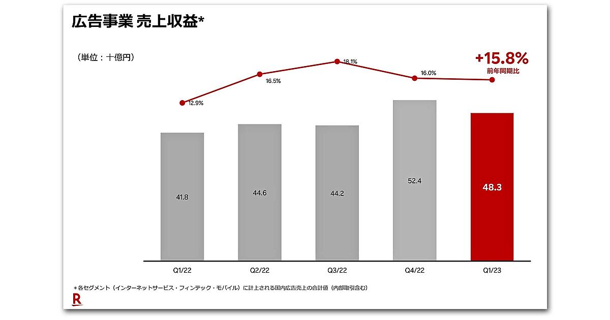 楽天グループは、2023年第1四半期(1~3月期)の連結決算を5月12日に発表した。売上高にあたる売上収益は前年同期比9.3%増の4756億円で、第1四半期として過去最高だった。インターネットサービス、フィンテック(金融技術)、モバイルの全事業分野で増収だった。一方、最終損益は825億円の赤字で、赤字幅は前年同期の918億円から縮小したものの、モバイル事業で携帯電話の基地局整備の投資が重荷となっている。