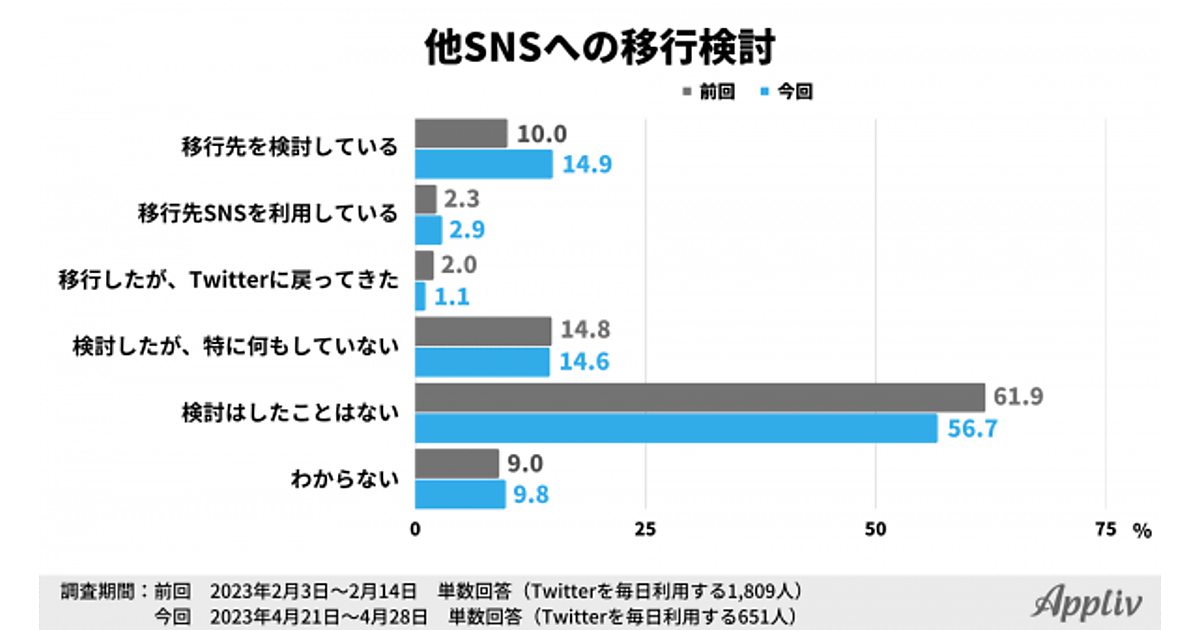 33.5%のユーザーが「他SNSへの移行を検討したことがある」