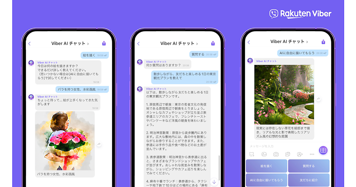 生成AIの活用への世界的な関心の高まりを受け、最新技術が手軽に体験できるサービスとして導入した。Viberは世界版のチャットボット「AI Chat & Create」を2月から提供しているが、今回日本語のメニューに対応したViber AI チャットを開始し、ユーザー体験の向上を図ることにした。Viber AI チャットを通じてViberアプリの利用者を増やす狙いもある。