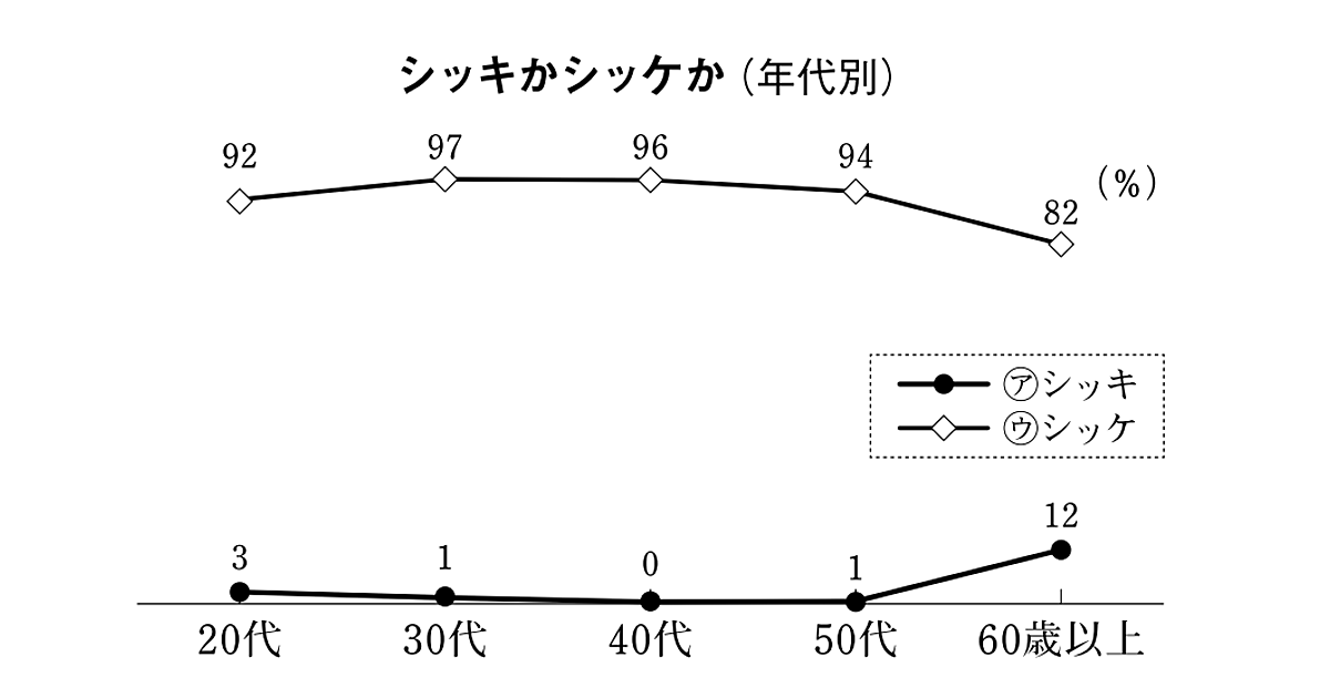 - 湿気 → 「シッキ」より「シッケ」が優勢(「シッキ」を削除)