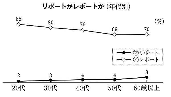 - リポート/レポート → 「リポート」より「レポート」が優勢