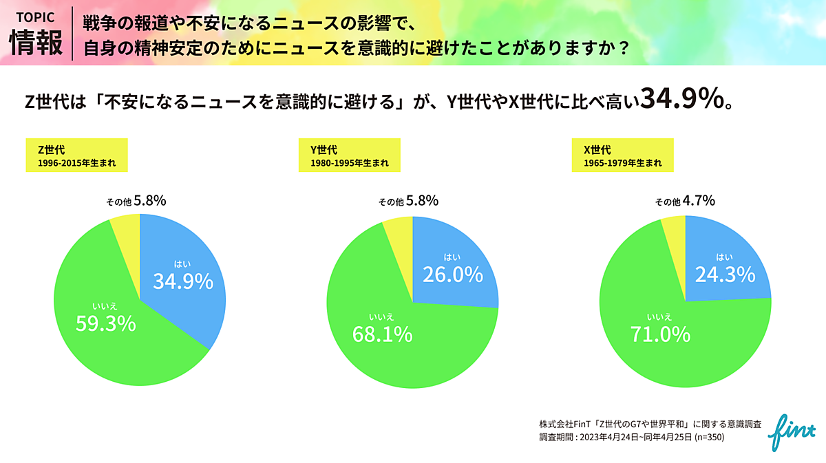 一方でZ世代は「自身の精神安定のためにニュースを意識的に避けたことがありますか?」という質問に対し、Y世代やX世代に比べ高い。ある意味デジタルネイティブらしい“取捨選択”を行っているとも言える。