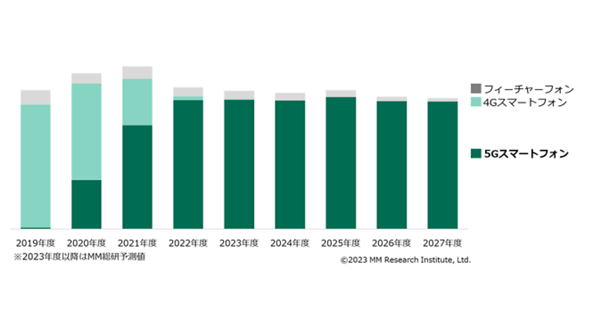 MM総研(MMRI)は、「2022年度通期 国内携帯電話端末の出荷台数調査」の結果を発表した。従来型携帯電話(フィーチャーフォン)、スマートフォンを合わせた総出荷台数を算出している。