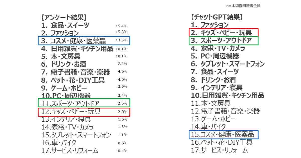 実際のアンケートとChatGPTの回答、結果は大きく異なる?