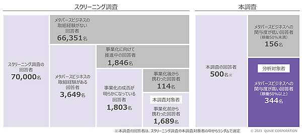 なお「メタバース」は、「インターネット上でユーザー自身がアバターを用いてお互いにコミュニケーションすることが可能な、現実世界とは別の仮想空間」と本調査では定義している。また「事業化の社内審査がおりた」「事業としてすでに運営している」と回答したケースを成功、「事業化に向けた検討が停滞している」「検討自体が中止された」を失敗と定義している。