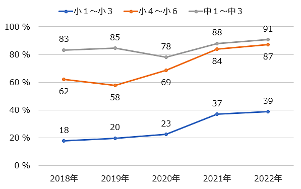 - 【調査対象】関東1都6県・小学生および中学生とその親