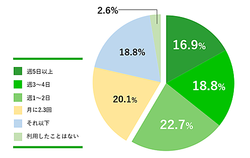そこで「学食(大学構内にある食堂・レストラン・カフェ)の利用頻度」を聞くと、「週5日以上」16.9%、「週3~4日」18.8%、「週1~2日」22.7%と、週1以上利用者が半数を超える。コロナ禍を経ても学食が愛用されているのがわかる。なお学食トレイのステッカー広告について「見たことがある」と回答したのは69.7%で認知度は高い。