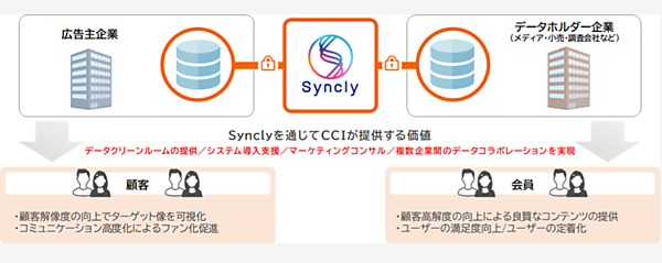 データクリーンルームは、個人を特定しない形でウェブの行動履歴や購買データをつなぎ合わせてデジタルマーケティングを実現するデータ基盤。ファーストパーティデータは企業が自社サイト訪問者から集めた情報。プライバシー保護意識の高まりを受け、データプライバシーに配慮したデータクリーンルーム技術が注目されていることをから、Synclyを展開する。