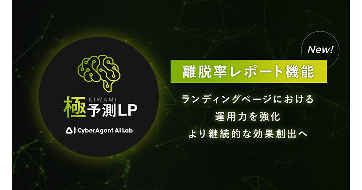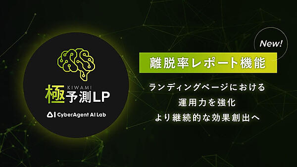 サイバーエージェントは、AI(人工知能)で効果の出せるランディングページ(LP)を予測・制作する「極予測LP(キワミヨソクエルピー)」で「離脱率レポート機能」を実装した、と6月22日に発表した。サイト訪問者が最初に到達するLPの課題点を抽出し、その部分を優先的に改善することで、より効果的なサイトの運用改善を実現できる。