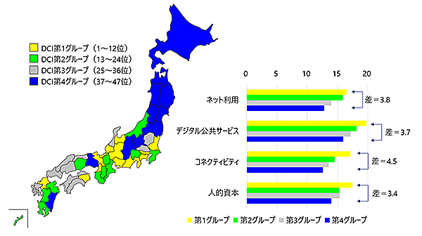 DCIのスコアを見ると、「コネクティビティ」による格差がもっとも大きかった。