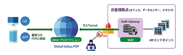 機密情報を扱う銀行、カード会社、保険会社など金融機関、ヘルスケア事業者が提供するWebサービスでWeb APIセキュリティの対策強化が急務となっており、アプリやデータにアクセスする度にユーザを評価して制御する「ゼロトラストアクセス技術」を応用した。アプリを利用するユーザのみがWeb APIを利用でき、防御対象のWeb APIには第三者がインターネット上から到達できず、対策の遅れた脆弱性を狙った攻撃でも完全に保護する。