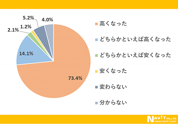 まず「昨年より電気代の支払額が高くなりましたか?」と聞くと、「高くなった」73.4%、「どちらかといえば高くなった」14.1%で、ほぼ9割が値上がりしている。こうした状況からか、「電気代の節約・節電を意識していますか?」についても、「意識している」63.0%、「どちらかといえば意識している」30.2%で、9割以上の人が節約・節電を意識していた。