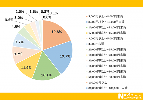 「月々の平均の電気代はいくらですか?」と聞くと、「5,000円以上~8,000円未満」19.8%、「8,000円以上~10,000円未満」19.7%がほぼ並び、「10,000円以上~12,000円未満」16.1%がそれに続く。これらを合わせた5,000円以上~12,000円未満で半数以上を占めた。