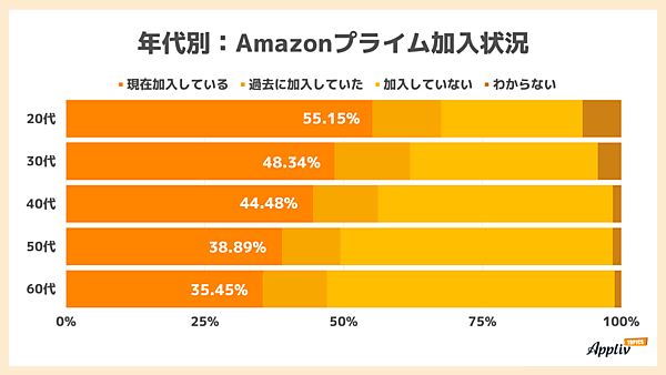 Amazonプライム加入率、20代は過半数。全体平均は44.19%