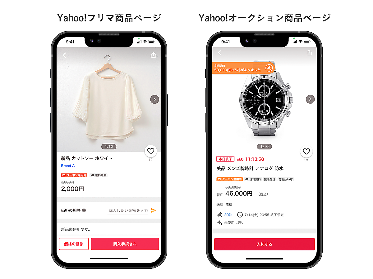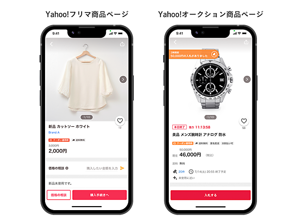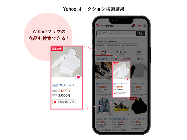 Yahoo!ブランドへの統一で10月以降デザインを順次刷新。商品詳細ページをPayPayフリマとヤフオク!で継ぎ目のない購入体験が可能になるようにリニューアルする。さらにヤフオク!でPayPayフリマの商品を検索し、サービスの切り替えなしで購入できるようにする。両サービスとも、名称変更した後も出品商品の落札・購入でかかる手数料は変わらない。