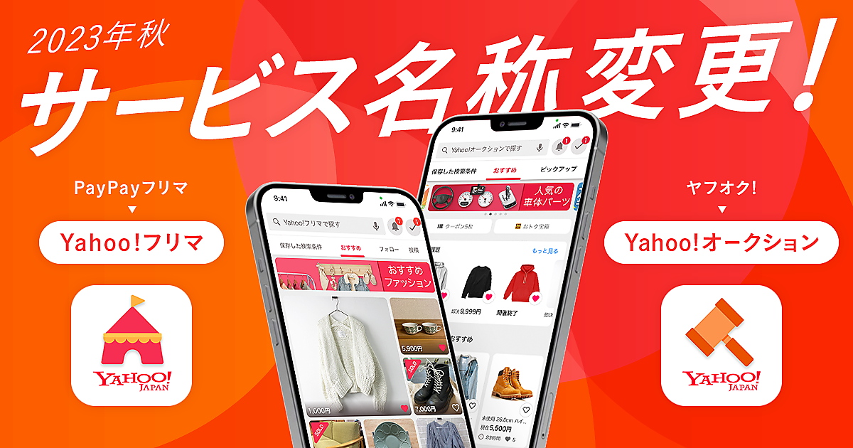 ヤフーは、同社が運営するネットオークションサービス「ヤフオク!」と、同個人間で取引できるフリーマーケットアプリ「PayPayフリマ」の名称を今秋に変更する。と7月14日発表した。「Yahoo!」ブランドに統一し、ヤフオク!を「Yahoo!オークション」、PayPayフリマを「Yahoo!フリマ」にする。サービス連携を強化し、両サービスの利用者拡大を図る。