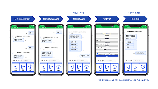 freee勤怠管理Plusは、テレワークなど就業管理の複雑化の対応に迫られたスモールビジネスや、多拠点で細かな権限管理が必要な51人以上1000人以下の法人向けソフト。ノンデスクワーカーの利用者数も多いLINE WORKSとfreee勤怠管理Plusとを連携し、打刻や打刻漏れ通知、各種申請、承認までできる「チャットで勤怠(freee勤怠管理)」を提供する。チャット画面から勤怠打刻と打刻漏れなどの通知・打刻不備の修正ができる。