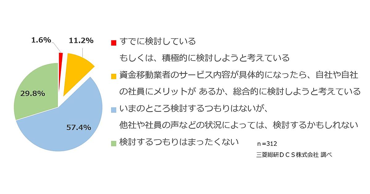 三菱総研DCSは、「給与デジタルマネー払い」に関する調査を実施した。同社の人事給与システム「PROSRV」を利用している企業担当者312名が回答している。