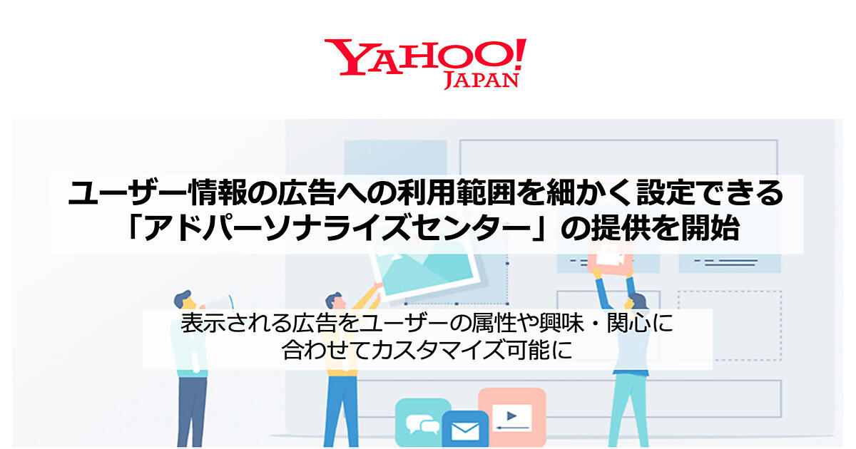 ヤフーは、ユーザー情報の広告への利用に関し、ユーザーが自ら自由に細かく選択・設定可能なサービス「アドパーソナライズセンター」を始めた、と7月26日発表した。プライバシーへの取り組み強化の一環。「Yahoo! JAPAN」に表示される情報をユーザーの興味・関心に合わせてカスタマイズできる。設定内容は、8月23日から順次、広告配信に適用される。