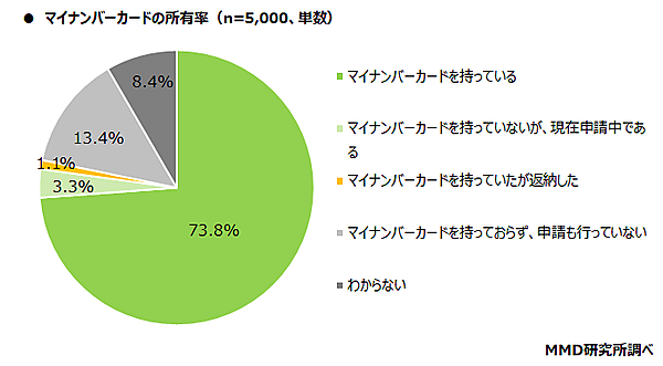 マイナンバーカード、現在の所有率は73.8%