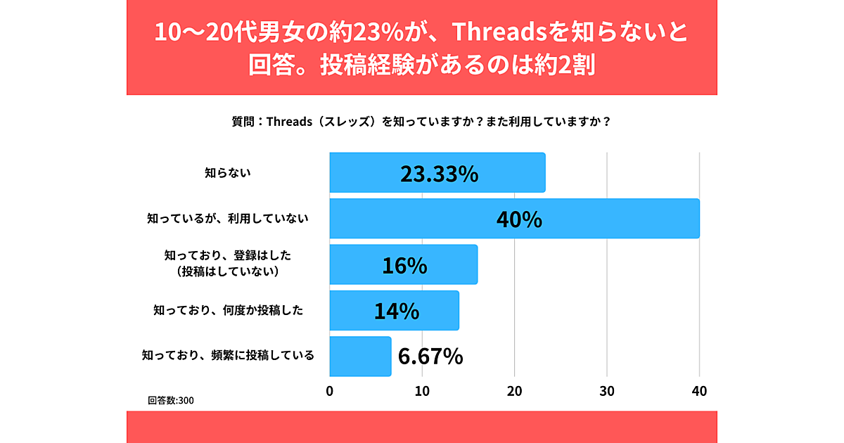 SheepDogは、「Threads(スレッズ)に関するアンケート」を実施した。15歳〜29歳の男女300人に聞いている。