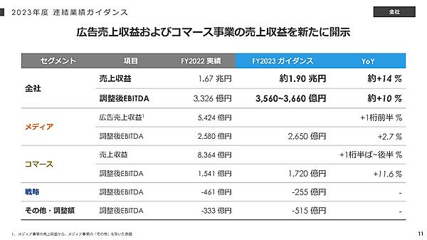 ZHDは、同社と中核子会社のLINEとヤフーを中心にしたグループ内再編を10月1日に予定している。グループ内再編を通じた事業の効率化と、25年3月期以降の再成長のための基盤作りの1年と位置づけ、固定費の削減や事業の選択と集中を進める。24年3月期の連結売上収益は同13.6%増の1兆9000億円、EBITDAは同7.0%から10.0%増の3560億円から3660億円を見込んでいる。