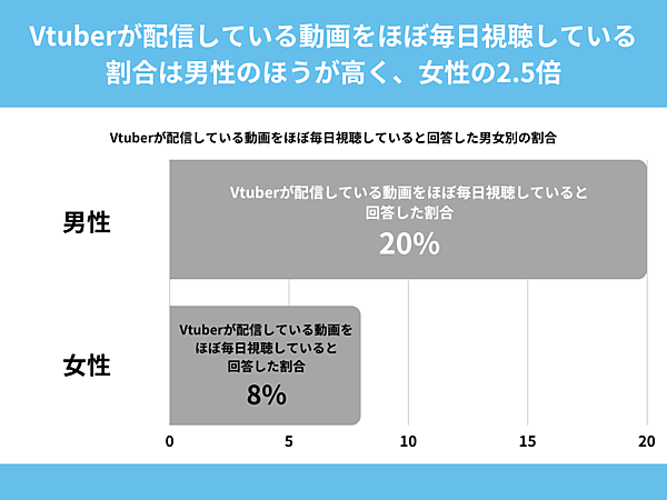 VTuberの配信「ほぼ毎日見ている」、男性20%、女性8%