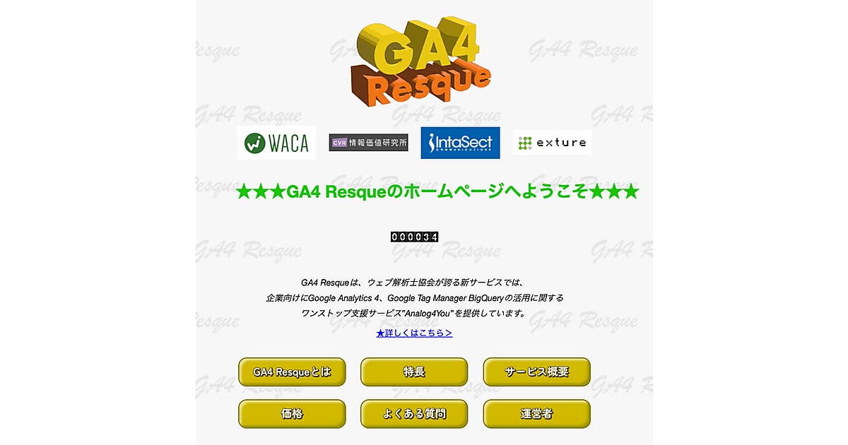 GA4は、顧客のデータを可視化する優れた機能があるものの、技術的なハードルが高く難しいと考えるウェブ担当者がいることから展開する。GA4rescueのウェブサイトは、マイクロソフトのOS「Windows95」の発売でインターネットの普及が始まった1995年風のデザインにした。アクセスカウンターがあり、“キリ番”を取るとプレゼントを贈る。
