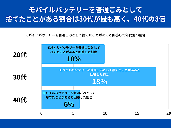 一方で、普通ごみとして捨てた人も一定数存在する。年代別では30代がもっとも高く18%、以下20代で10%、40代で6%という結果だった。