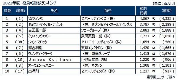 東京商工リサーチは、「役員報酬」に関する調査結果を発表した。全証券取引所の2022年度決算(2022年4月期~2023年3月期決算)の上場企業3,899社が対象。
