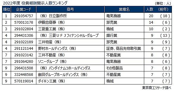 企業別では日立製作所が20人(前年度18人)で、4年連続最多だった。開示人数が20人以上だったのは、2018年度の三菱電機(21人)以来、4年ぶり。基本報酬が中心の日本型役員報酬から、業績に連動した欧米型の報酬体系へと移行。さらに、ストックオプションや株式報酬など非金銭報酬が定着したことで、報酬額を押し上げたと見られるという。