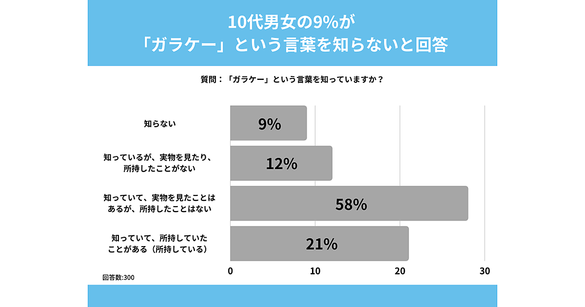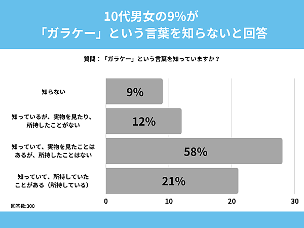 そのほかでは「知っているが、実物を見たり、所持したことがない」12%、「知らない」9%で、10代の1割はこの単語すら知らなかった。