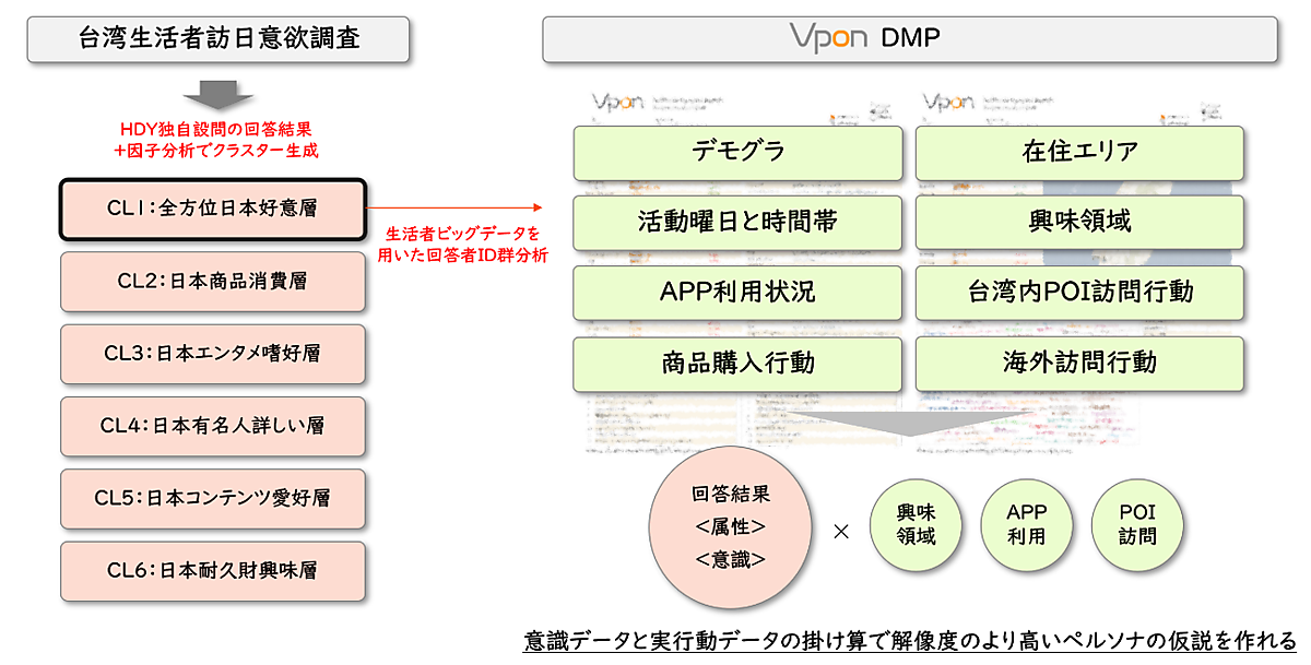 共同研究では、MTCが持つデータマーケティングソリューションの開発知見と、Vpon JAPANの台湾生活者データと広告ネットワークを組み合わせ、日台クロスボーダーマーケティングソリューションを開発。ソリューション開発のための共同研究の第1弾で台湾の生活者から訪日潜在層を抽出し、訪日意欲調査を実施。今後のマーケティングへのポイントを探った。