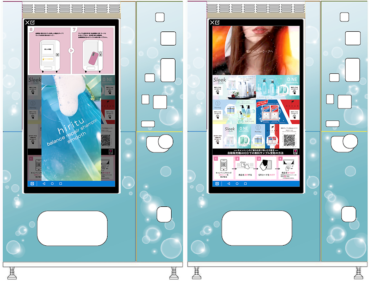 自販機のQRコードを読み取ってフォームを入力するとQRコードが表示され、自販機で商品を選択してそのQRコードをかざす仕組み。サンプリングは、東京・新宿の商業施設「新宿ミロード」7階▽東京・お台場の同「お台場アクアシティ」3階▽福岡市の同「MARK IS 福岡ももち」2階▽東京スカイツリーの同「ソラマチ」(屋外)で実施する。