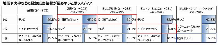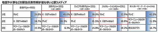 災害情報、若年層は「テレビ」より「X(旧Twitter)」に依存