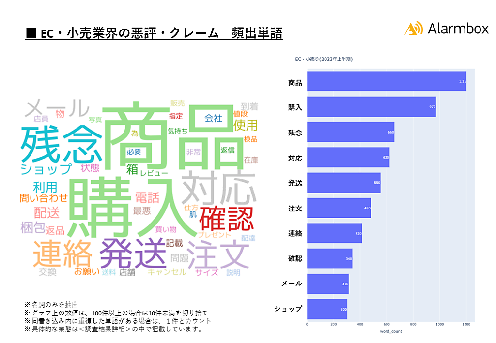 - 【調査方法】インターネット上に投稿されたクチコミのうち、アラームボックスが「悪評・クレーム」と分類したものを集計