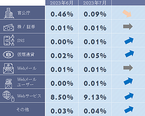 セキュリティソフト「Internet SagiWall」(詐欺ウォール)を提供するBBソフトサービスは、2023年7月度のインターネット詐欺リポートを発表した。詐欺ウォールを利用しているユーザーのアクセス数値を集計し、詐欺サイトの動向を分析した内容となっている。
