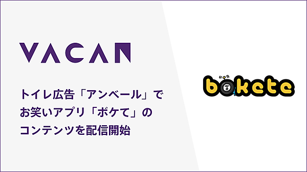 空席情報収集サービス事業のバカンは、同社のトイレ内広告メディア「アンベール」が、ウェブインテグレーション・ウェブメディア事業のオモロキが運営するお笑いウェブサービス「写真で一言ボケて(bokete)」と連携する、と9月19日発表した。アンベールのデジタルサイネージでboketeのコンテンツを配信し、トイレの利用で笑える機会を創る。