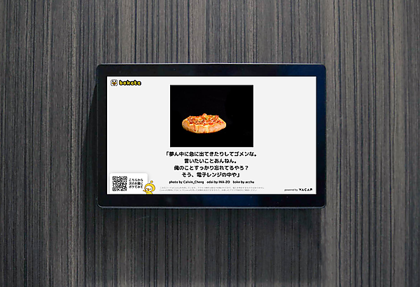 デジタルサイネージでは、boketeに過去に投稿された作品を配信。30秒の動画内で3種類のボケを紹介する。boketeのサイト・アプリにバカン専用ページを開設し、トイレに関するお題を投稿する。トイレ内のデジタルサイネージに表示されるQRコードからアクセスすることで、利用者もboketeに参加できる。boketeには累計1億件のボケ投稿がある。