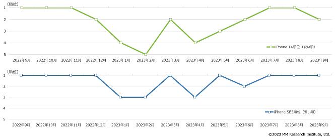一世代前のiPhone 14についても、iPhone 15発売前(119,800円)の価格から7,000円値下げされたことで日本は112,800円となり、2番目の安さとなっている。なおiPhone SE3の日本における販売価格は、iPhone 15の発売による変化はみられず62,800円だが、これも世界最安の水準だ。