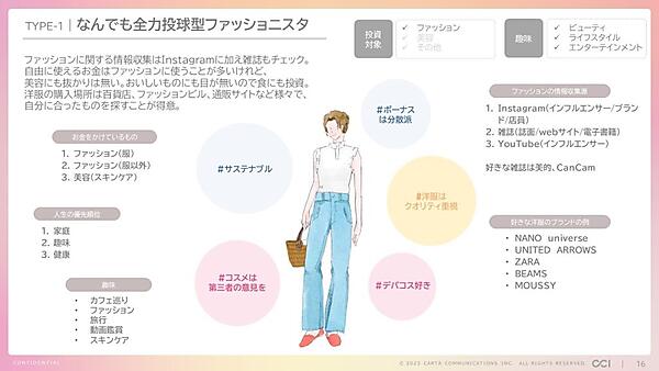 CARTA COMMUNICATIONS(CCI)は、20~40代女性のライフスタイル実態に関する調査結果を発表した。同社のコンテンツマーケティング支援プロジェクト「Lifestyle Digital CONNECT」(LDC)が行ったもので、調査結果をもとに9つの“ペルソナ”(代表的な性格)を公開している。