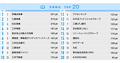 一方2位以降では細かな変動があり、2位「資生堂」は前年4位から、3位「NTTデータ」は前年6位からのランクアップを果たしている。また上位20社のうち、メーカー企業が10社を占めており、人気の高さをうかがわせる。